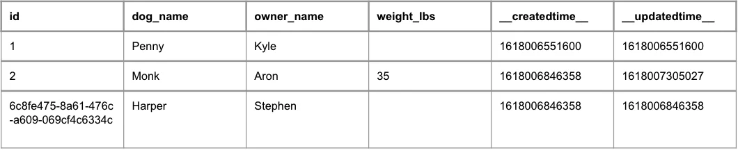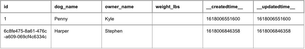 __createdtime__: The time the record was created in Unix Epoch with milliseconds format.__updatedtime__: The time the record was updated in Unix Epoch with milliseconds format.